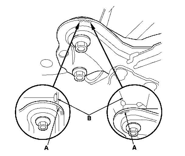 44. Make the appropriate reference lines (A) at both ends of the subframe that line up with the body (B).