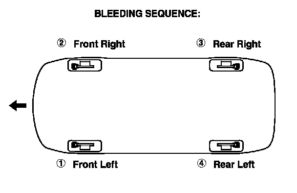 NOTE: Bleed the calipers or the wheel cylinders in the sequence shown.