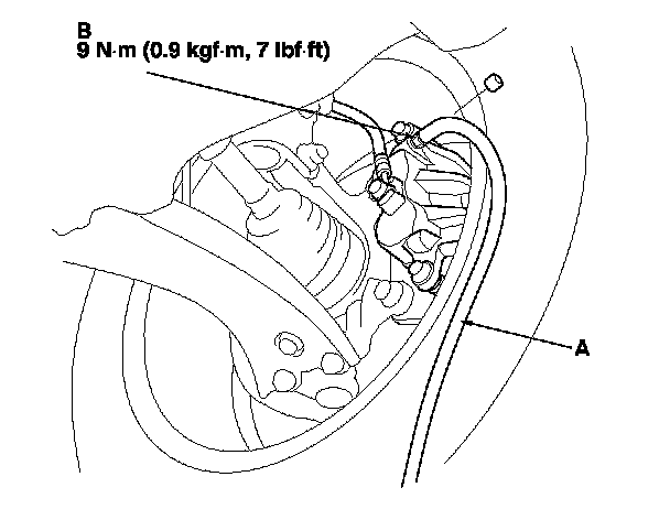 4. Attach a length of clear drain tube (A) to the bleed screw (B), then loosen the bleed screw to allow air to escape from the system. Then tighten the bleed screw securely.