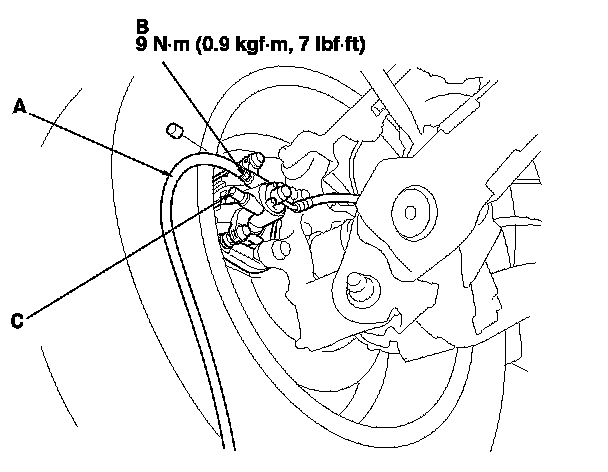 NOTE: Do not loosen the special bolt (C) on the rear caliper.