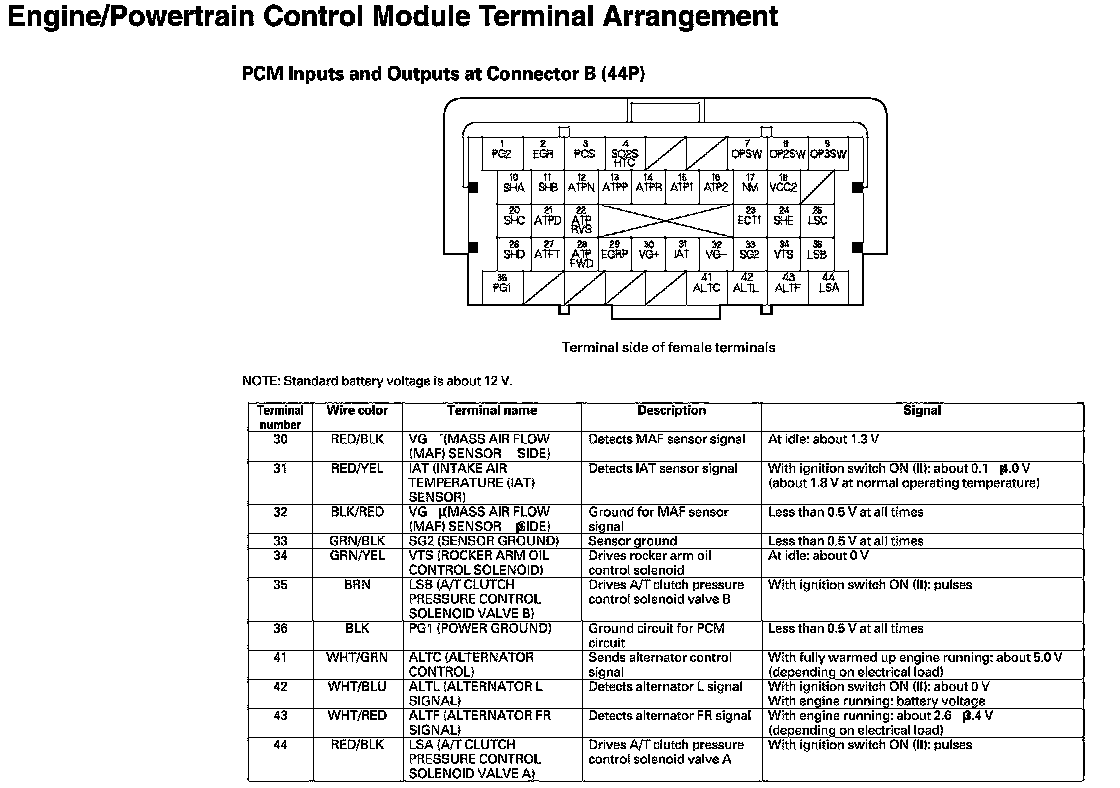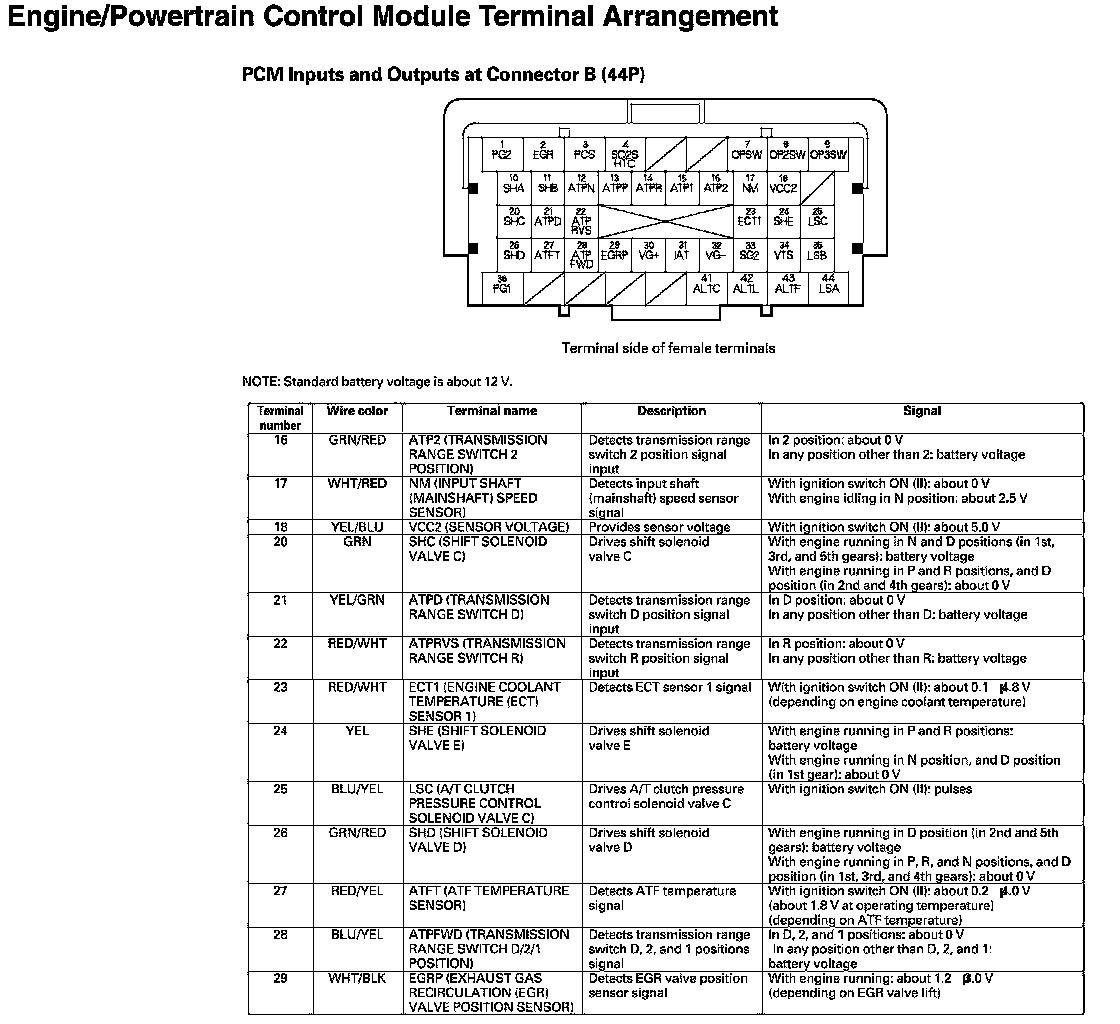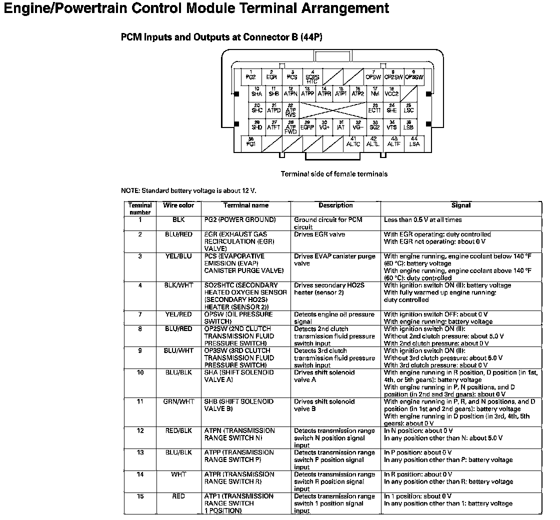 PCM Inputs And Outputs at Connector B