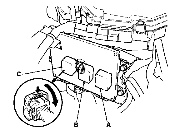 13. Disconnect PCM connectors A, B, and C.