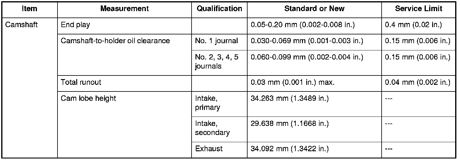 Camshaft Specifications