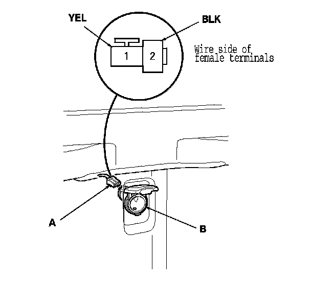 2. Disconnect the 2P connector (A) from the cargo area accessory power socket (B).