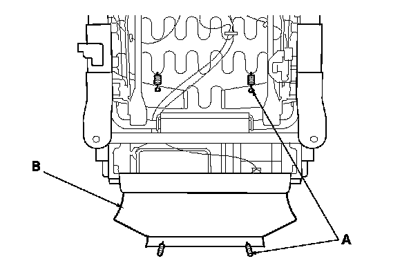 4. Release the hook springs (A), then pull away the bottom of the seat-back cover (B).