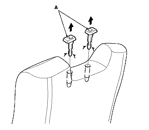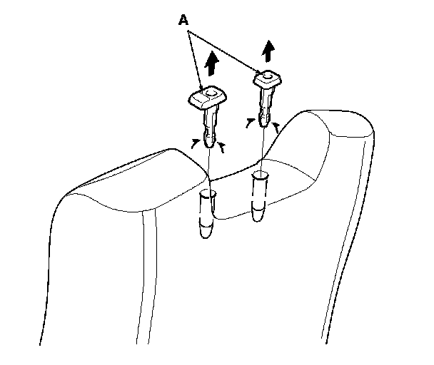 8. Pinch the tabs on the ends of the head restraint guides (A), and remove them from the seat-back.
