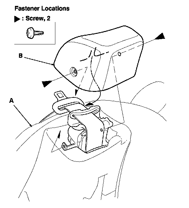 13. Turn over the seat-back cover (A), then remove the screws securing the shoulder front seat cover (B).