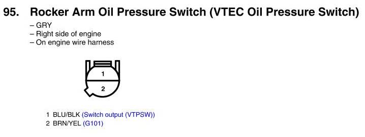 View 95 - Rocker Arm Oil Pressure Switch (VTEC Oil Pressure Switch) Connector View