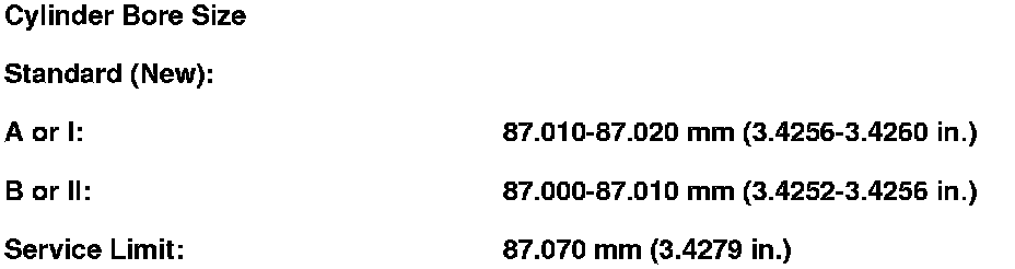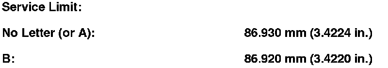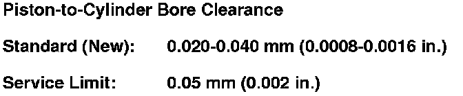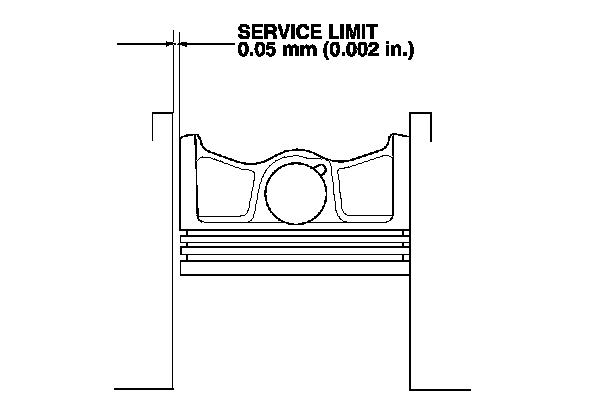 7. Calculate the difference between the cylinder bore diameter and the piston diameter. If the clearance is near or exceeds the service limit, inspect the piston and cylinder bore for excessive wear.