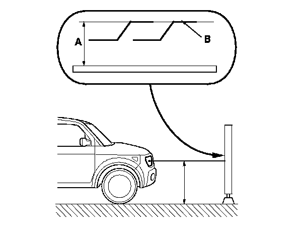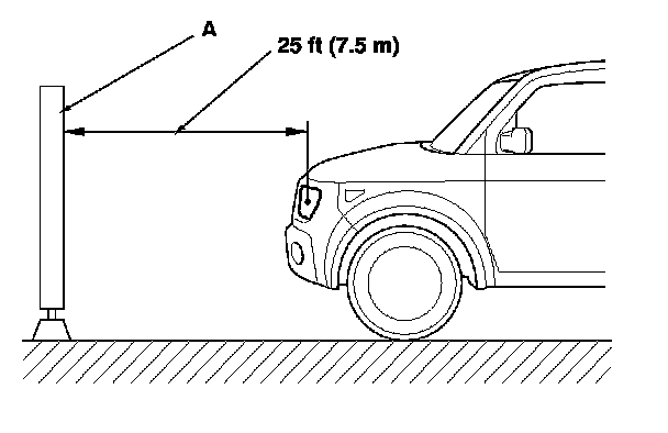 2. Park the vehicle 25 ft (7.5 m) away from a wall or a screen (A).