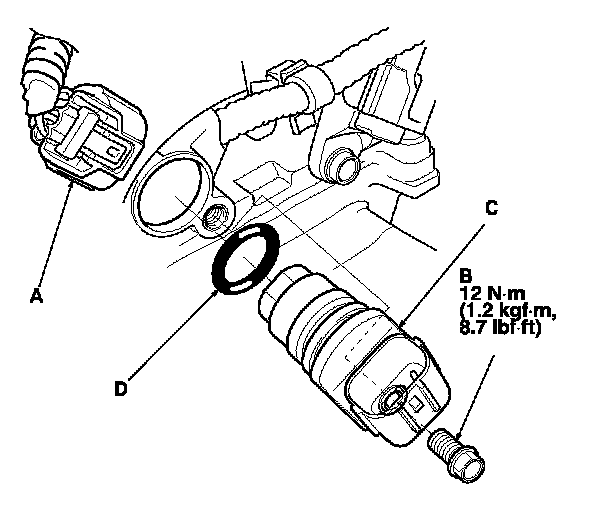 5. Install the parts in the reverse order of removal with a new O-ring (D).
