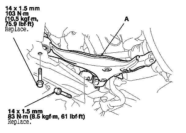 6. Remove the flange bolts, and remove the lower arm (A).