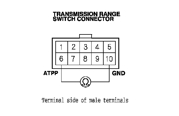 23. Check for continuity between transmission range switch connector terminals No. 6 and No. 10.