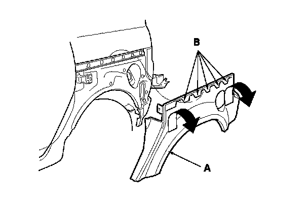 8. Pull up the rear quarter panel cladding (A) to release the hooks (B) from the body, then remove the cladding. The clips will stay in the body.