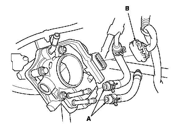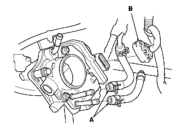 8. Disconnect the throttle actuator connector (B).