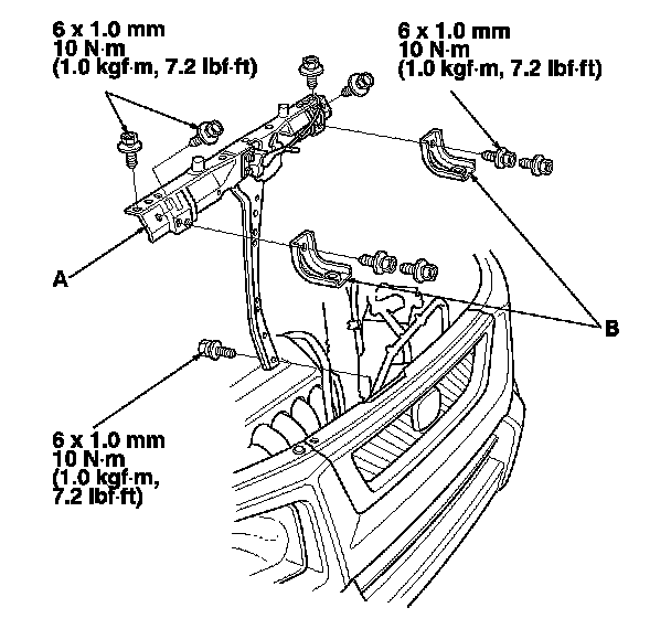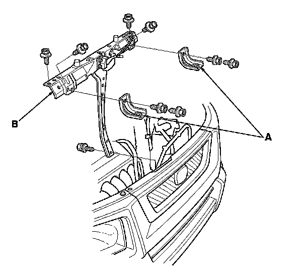 6. Install the bulkhead (A), then install the upper bracket and cushions (B).