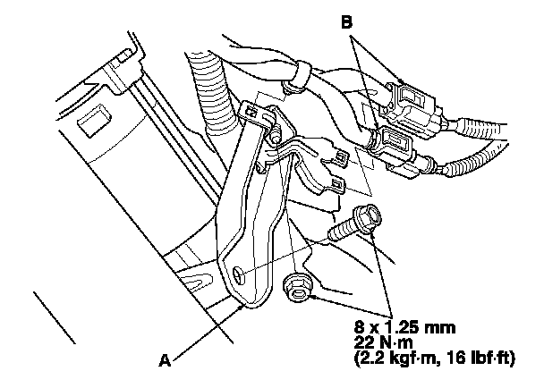 3. Install the intake manifold bracket (A), then connect the connectors (B).