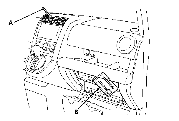 4. Open the glove box. Remove the glove box stop on each side, then let the glove box hang down. Service and Repair