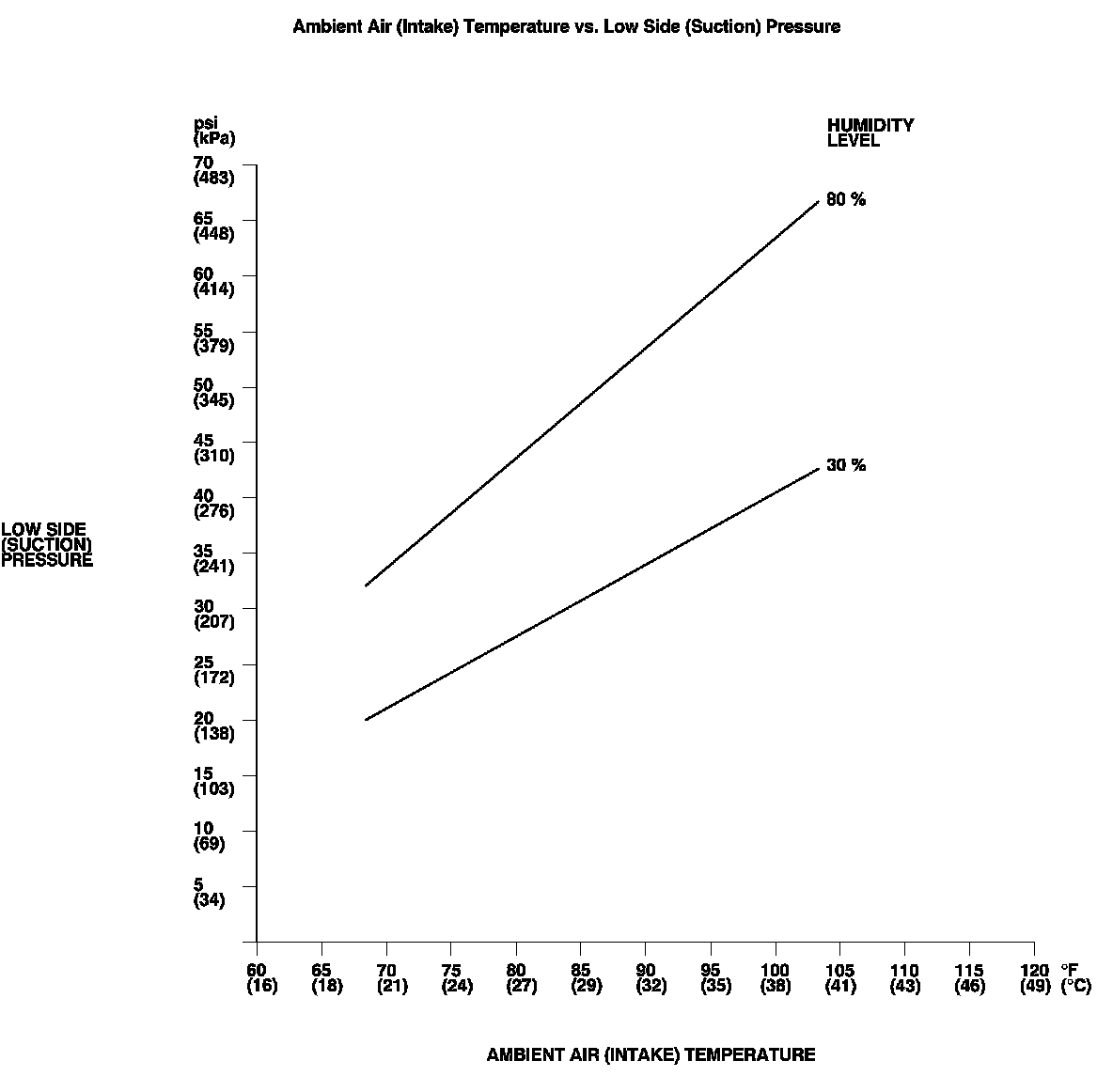12. To complete the low side (suction) pressure/ambient air (intake) temperature chart: