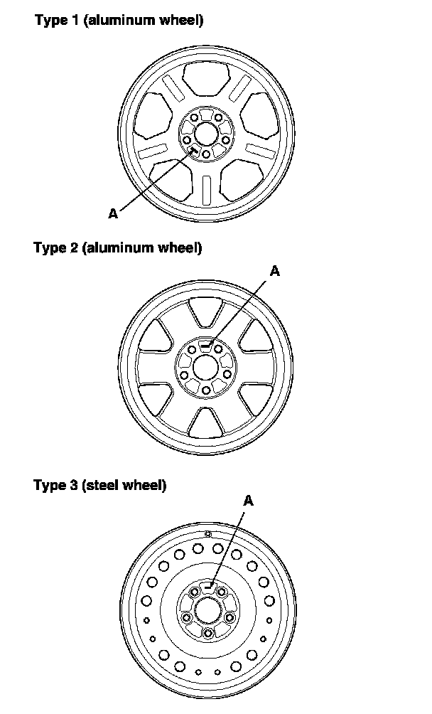 - Use only wheels that have a "TPMS" mark (A) on the inside of the aluminum wheels, and the outside of the steel wheel.