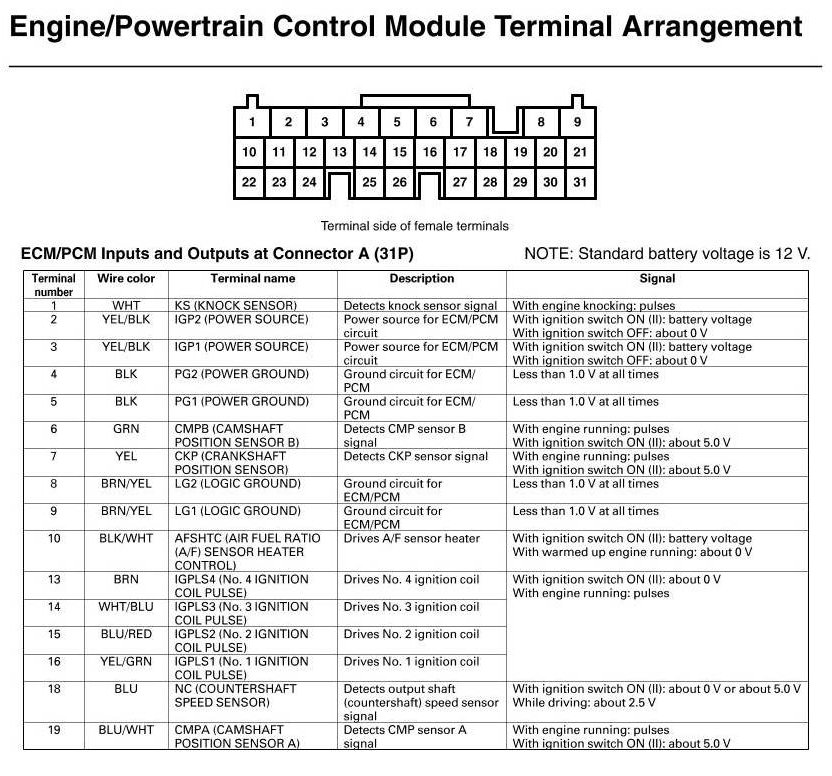 ECM/PCM Inputs And Outputs At Connector A