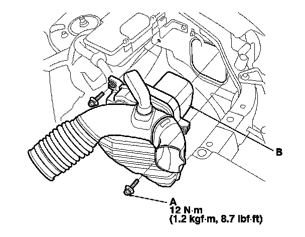 4. Remove the intake air resonator (B).