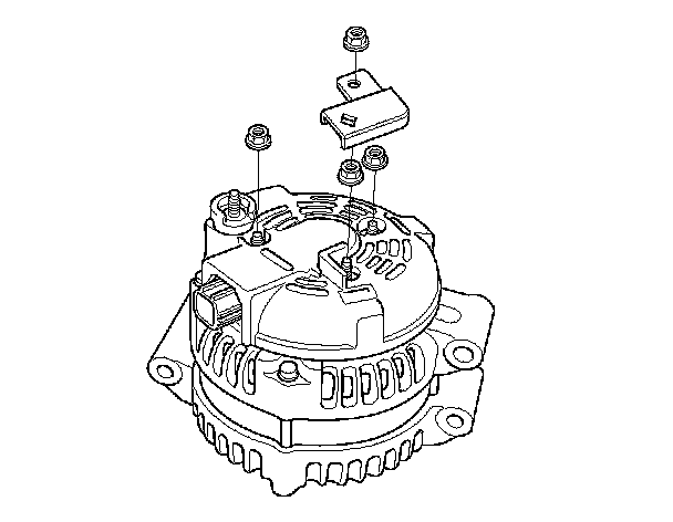 4. Remove the harness stay and the three flange nuts from the alternator.