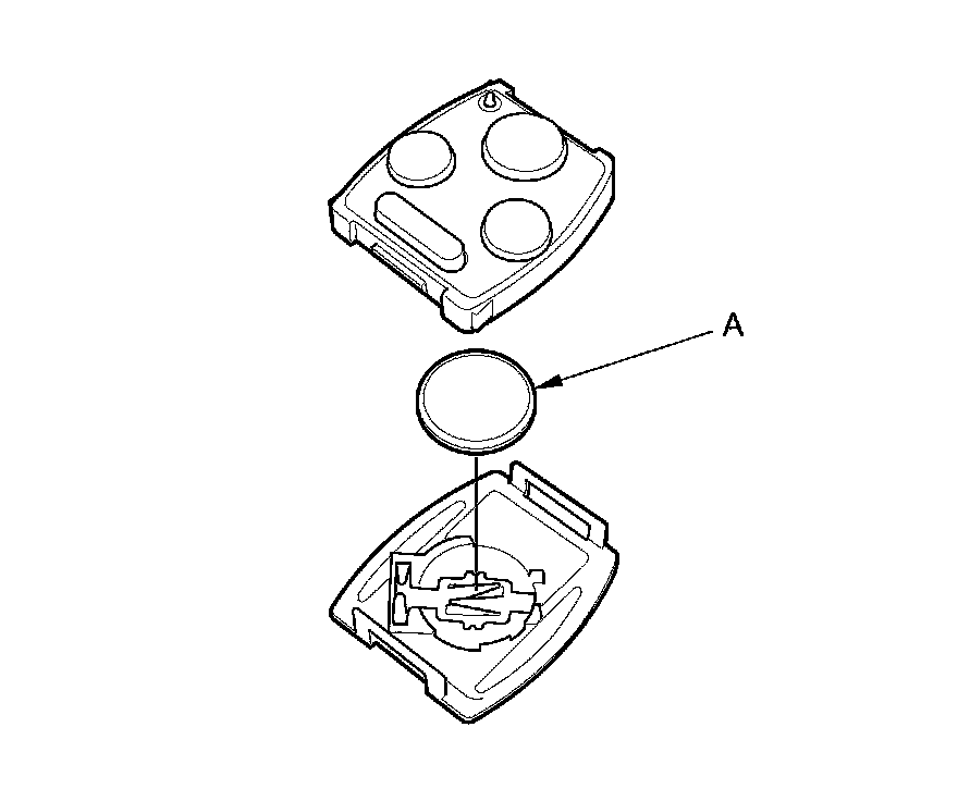 4. Replace the transmitter battery (A) with a new one, and try to lock and unlock the doors with the transmitter by pressing the lock or unlock button at least 10 times.