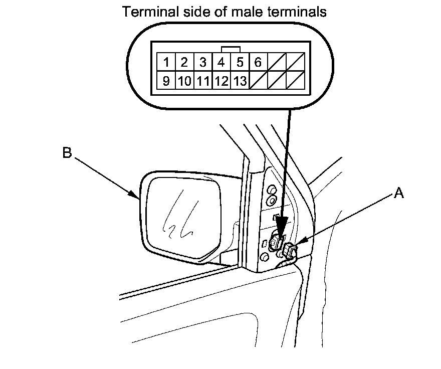 2. Disconnect the 16P connector (A) from the power mirror actuator (B).