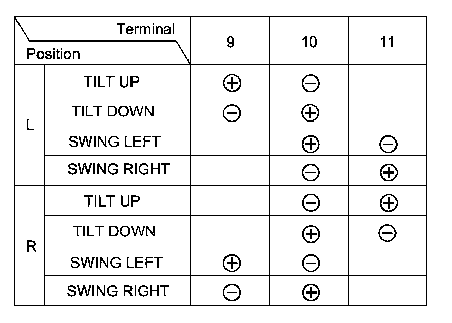 3. Check the actuator operation by connecting power and ground according to the table.