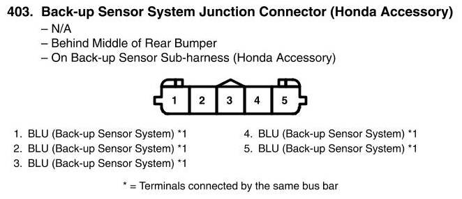 View 403 - Back-Up Sensor System Junction Connector View (Honda Accessory)