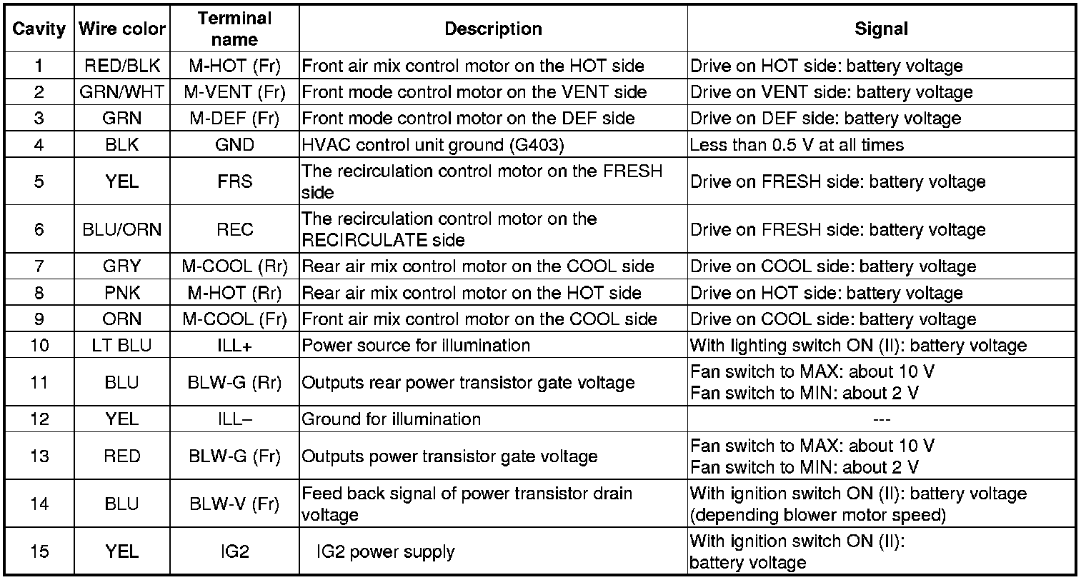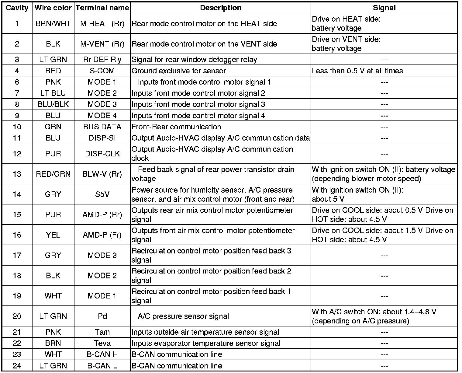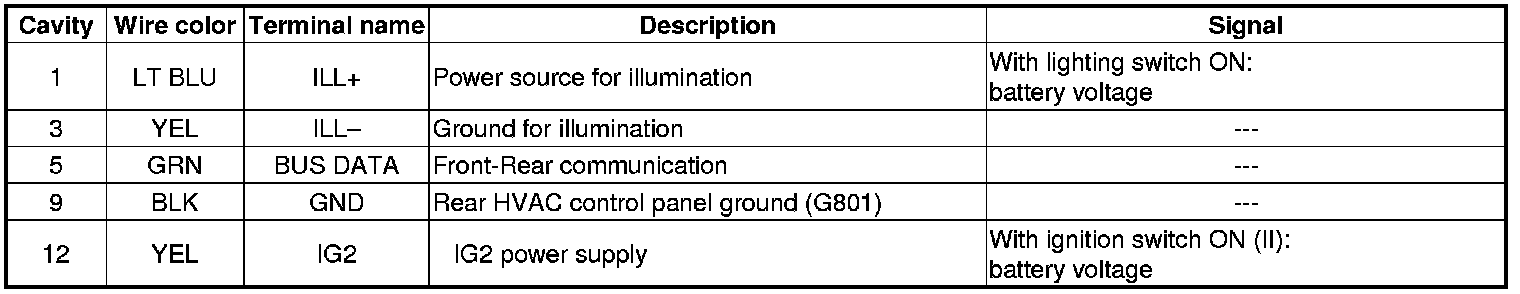 Rear HVAC Control Panel Inputs and Outputs