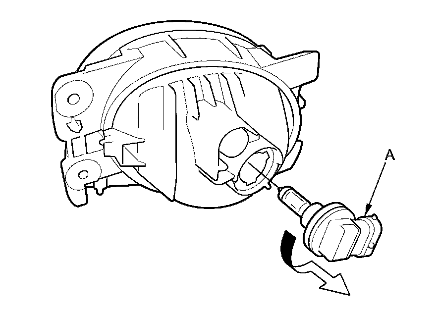 4. Turn the bulb socket (A) 60° counterclockwise to remove it from the housing.