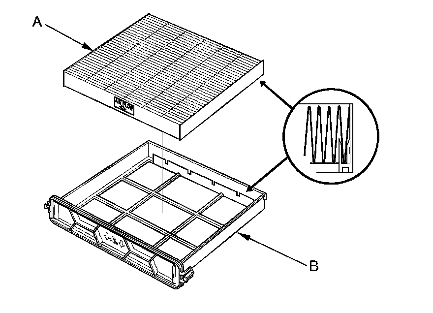 3. Remove the filter (A) from the housing (B), and replace the filter.