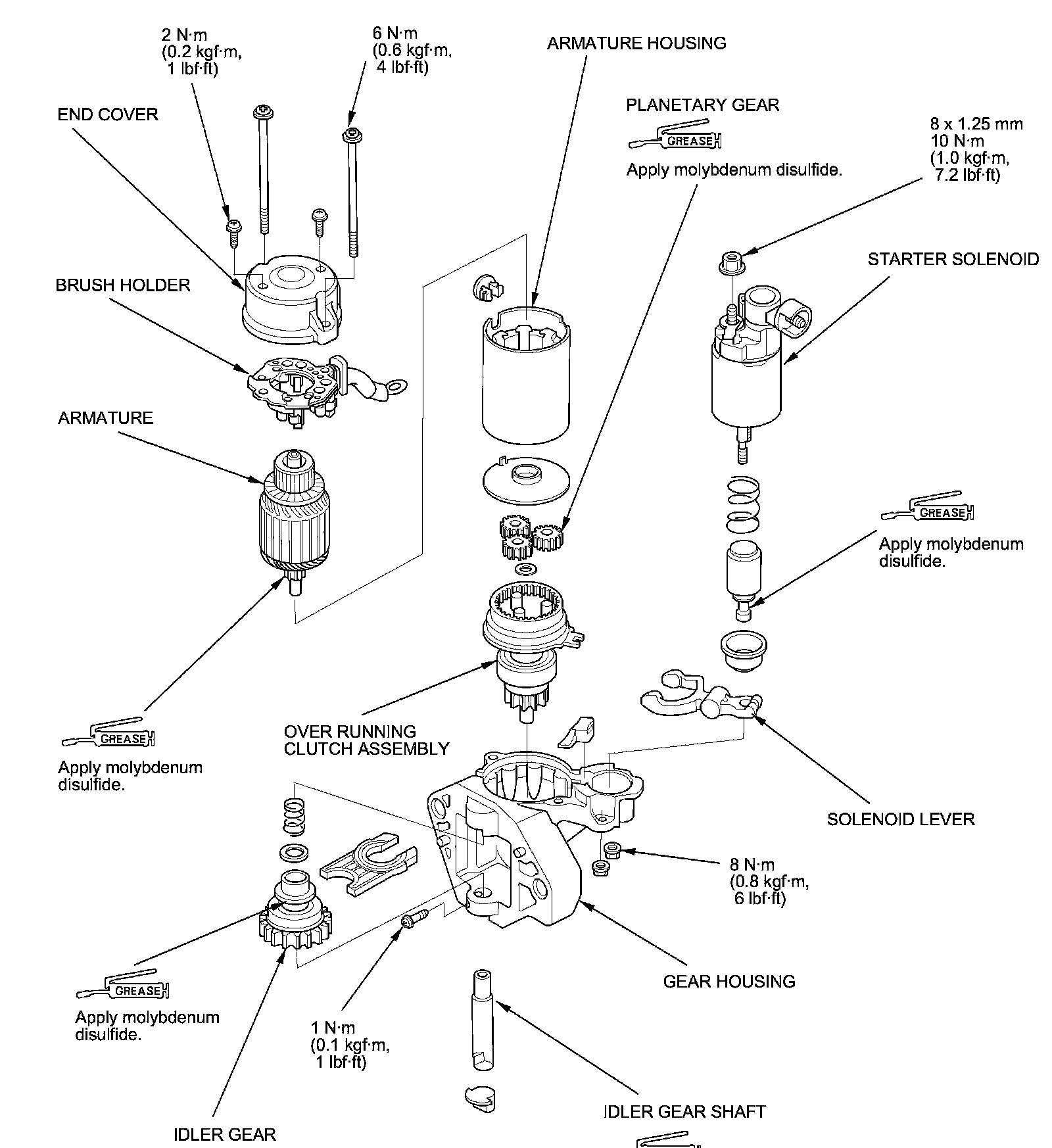 NOTE: Disassemble the starter as shown in the Exploded View.