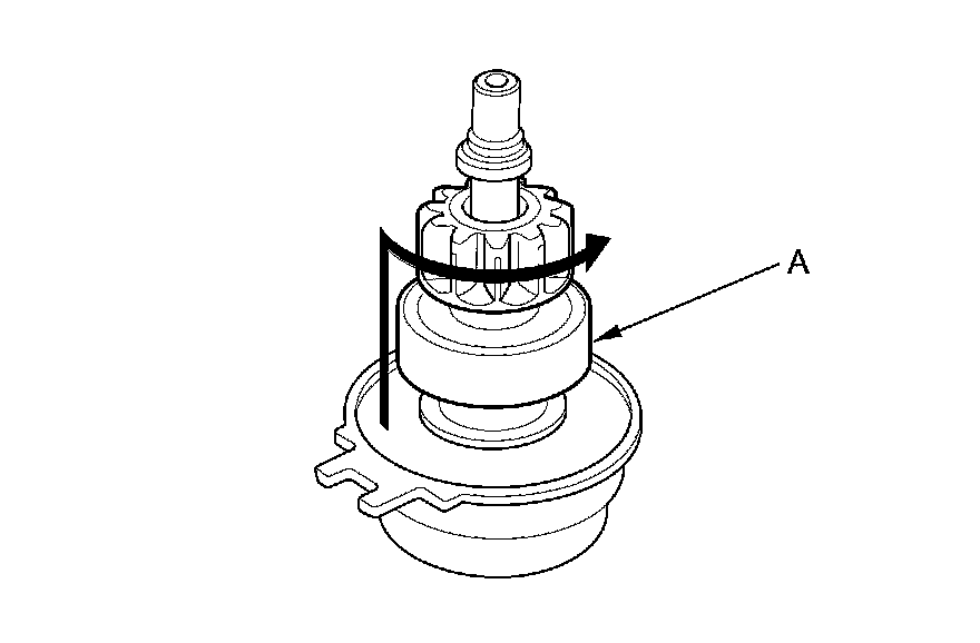 14. Slide the overrunning clutch (A) along the shaft. Replace it if it does not slide smoothly.