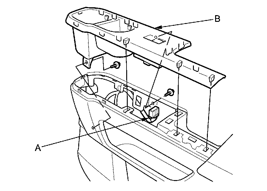 2. Remove the screws and disconnect the connector (A) from the rear power window switch (B), then remove the switch assembly from the door panel.