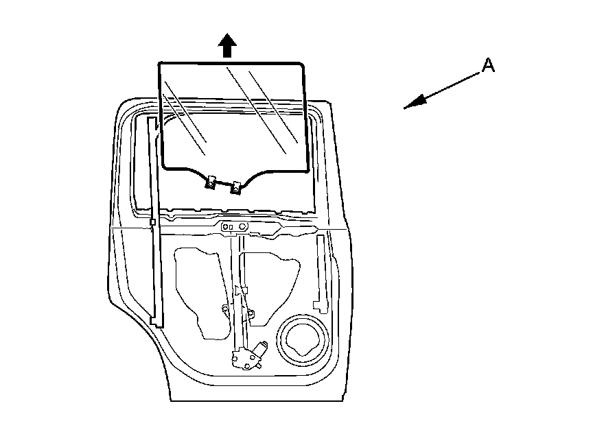 8. Carefully remove the glass (A) out through the window slot. Take care not to drop the glass inside the door.