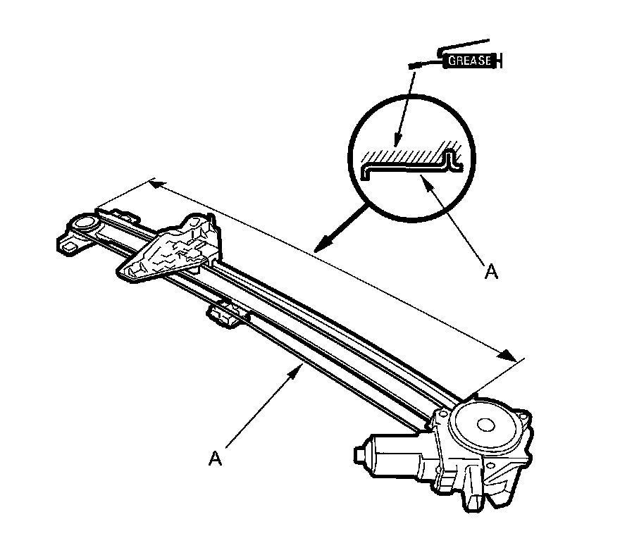 11. Apply multipurpose grease to all the sliding surfaces of the regulator (A) where shown.