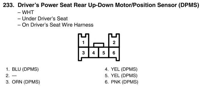 Driver's Power Seat Rear Up-Down Motor/Position Sensor Connector View (DPMS)