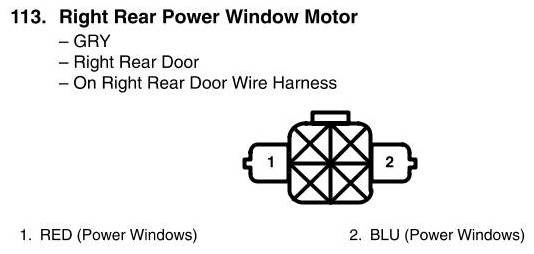 View 113 - Right Rear Power Window Motor Connector View