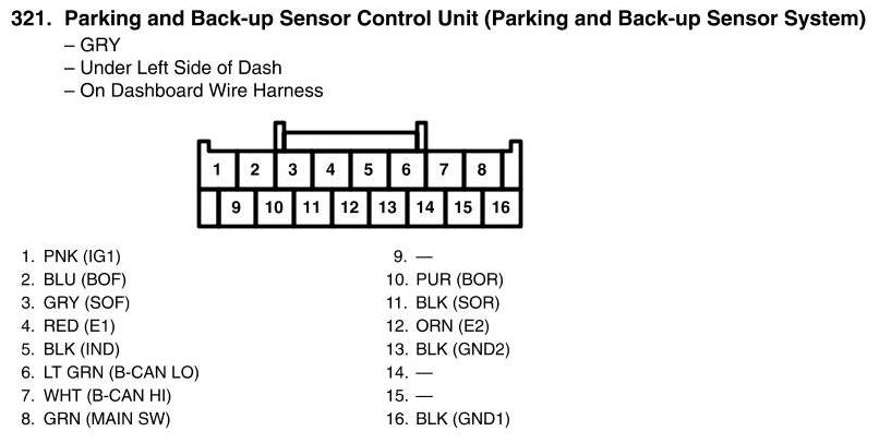 View 321 - Parking And Back-up Sensor Control Unit Connector View (Parking And Back-up Sensor System)