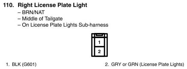 Right License Plate Light Connector View