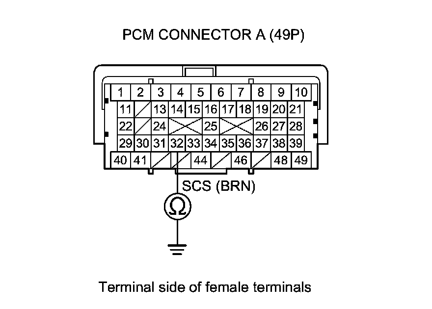 7. Check for continuity between PCM connector terminal A32 and body ground.