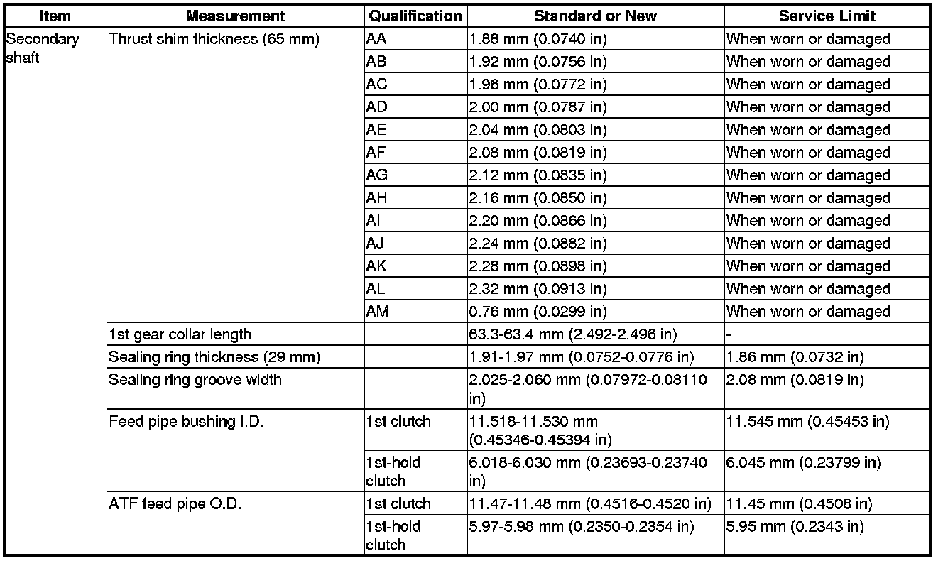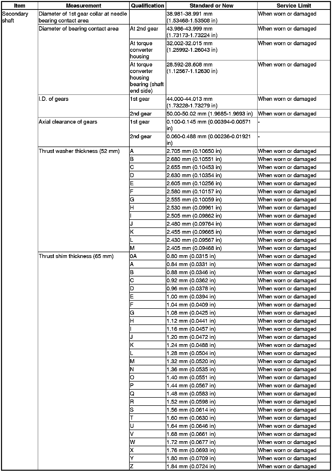 Secondary Shaft Specification(s)