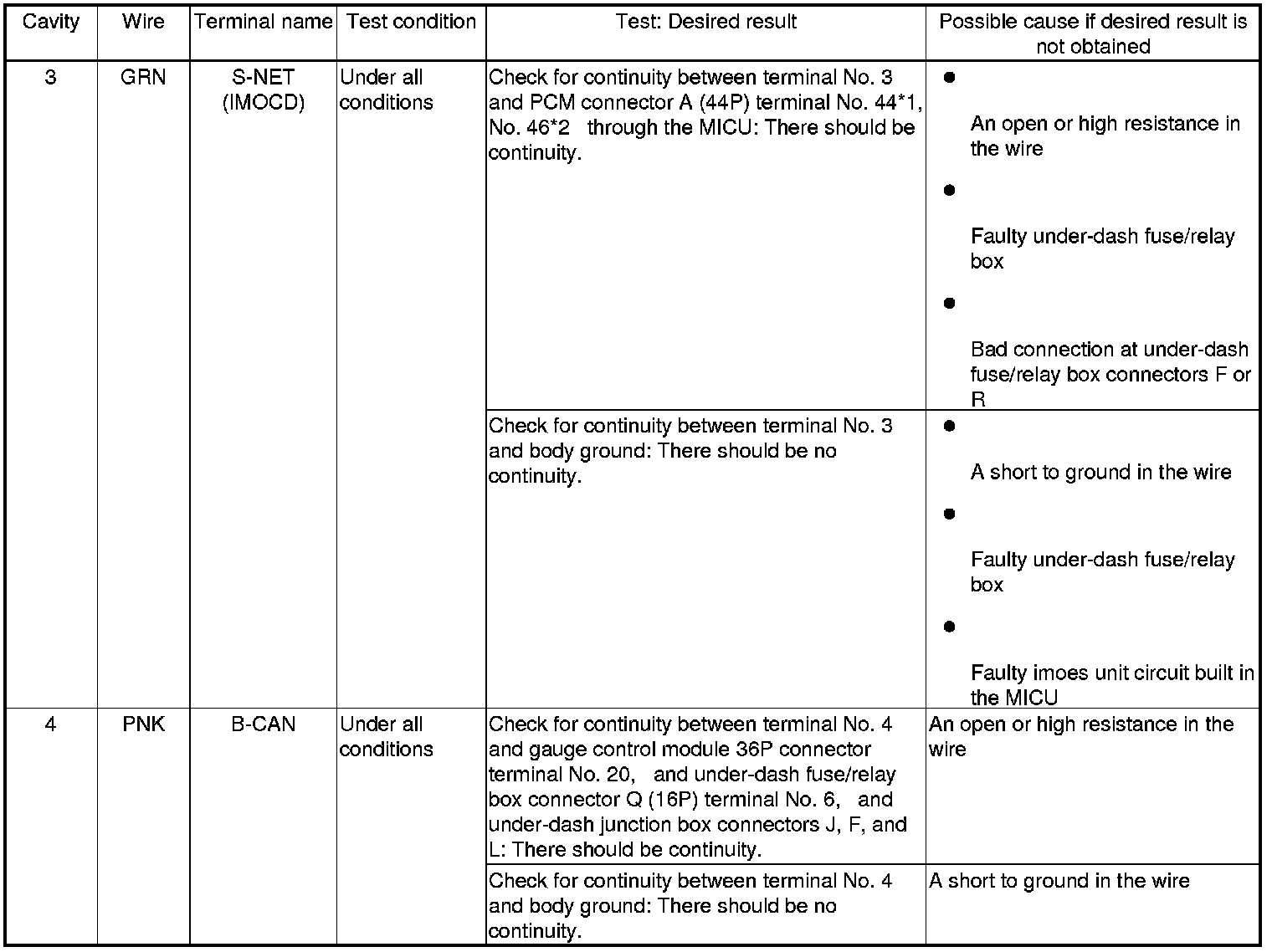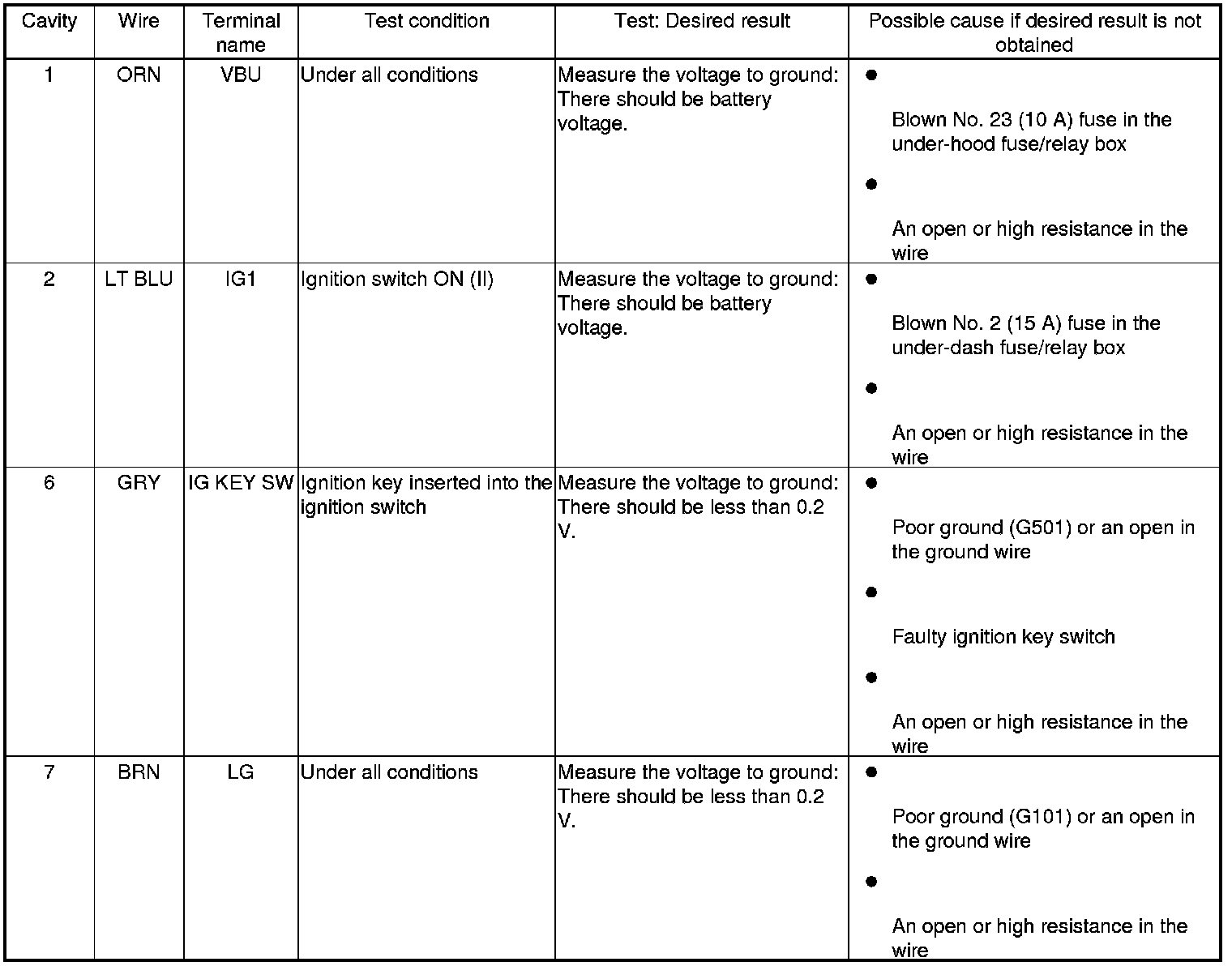NOTE: Before testing, troubleshoot the multiplex integrated control unit first, using B-CAN System Diagnosis Test Mode A Troubleshooting - B-CAN System Diagnosis Test Mode A, and check the No. 23 (10 A) fuse in the under-hood fuse/relay box and the No. 2 (15 A) fuse in the under-dash fuse/relay box.