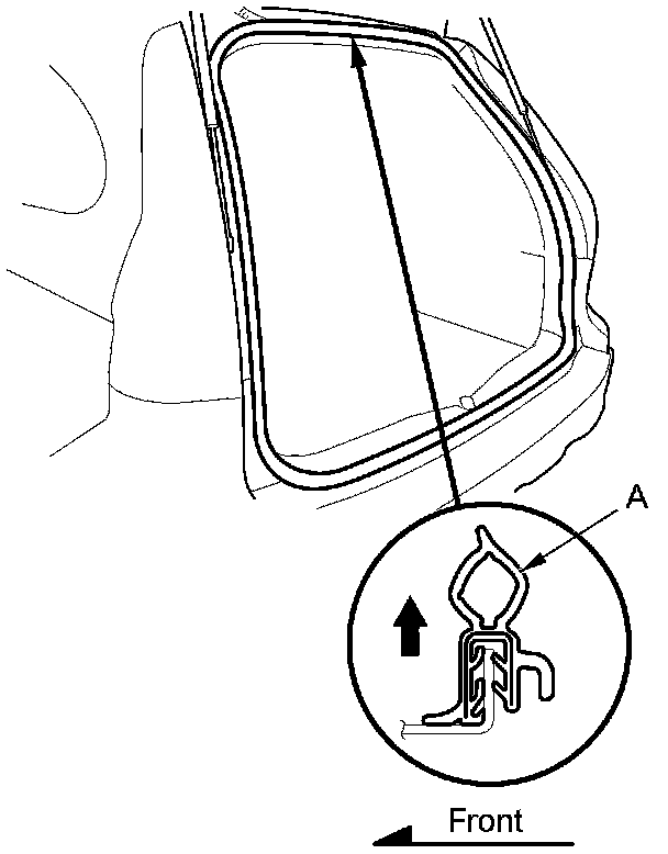1. Remove the tailgate weatherstrip (A) by pulling it out.