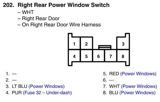 View 202 - Right Rear Power Window Switch Connector View