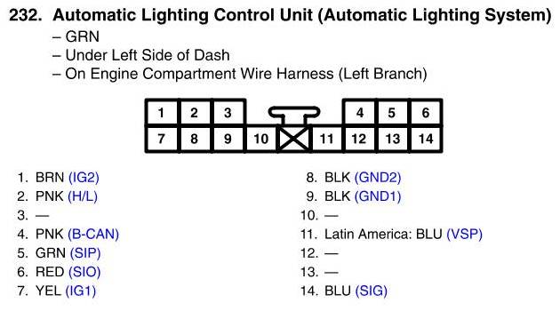 View 232 - Automatic Lighting Control Unit Connector View (Automatic Lighting System)