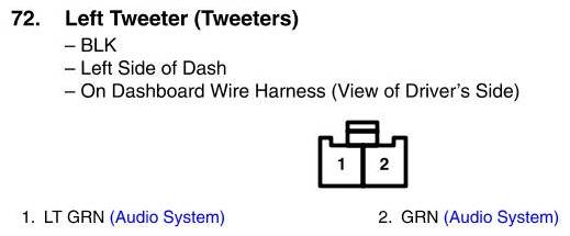 View 72 - Left Tweeter Connector View (Tweeters)
